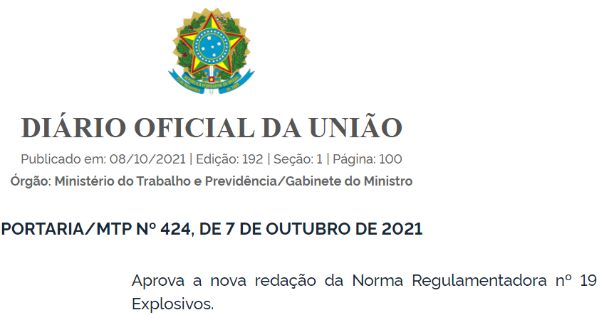 Veja Portaria na íntegra através do link: PORTARIA_MTP Nº 424, DE 7 DE OUTUBRO DE 2021 – PORTARIA_MTP Nº 424, DE 7 DE OUTUBRO DE 2021 – DOU – Imprensa Nacional